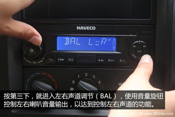 一般人只会操作收音机上的调频旋钮和音量控制旋钮,但其实很多车载的收音机都隐藏着均衡器的功能,所谓的“高音甜中音准低音沉”,就是靠这均衡器来调整,当然也包括调整左右声道。接下来,笔者就借用一下超越C500轻卡上的收音机给大家介绍一下收音机咋用。调节音量和选择收音机频道那些就不介绍了。