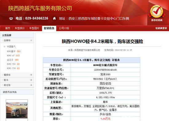 在网络资讯发达的现在,卡车之家作为领先的卡车互动网络媒体,拥有全面及详细的轻卡介绍、导购及促销降价信息以及清晰的经销商页面。这为拥有完善服务的经销商售车提供了一条快捷通道的同时,也为方便了用户咨询购车,降低买车风险,实现多方互盈。(图 何华艳)