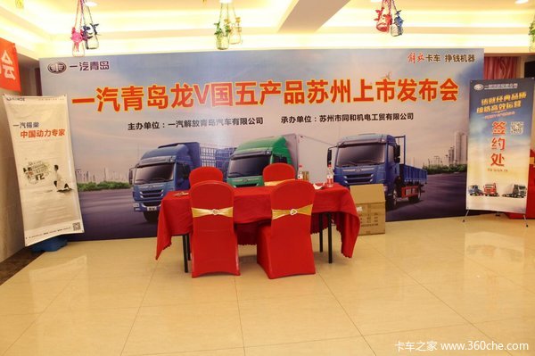 【卡车之家 原创】2016年7月19日,苏州市同和机电工贸有限公司在苏州相城区苏虞张公路蠡口段园中大道(渭塘酒家)举行了一汽青岛龙V暨锡柴恒威(4/6DLD)国五产品推介会。