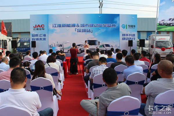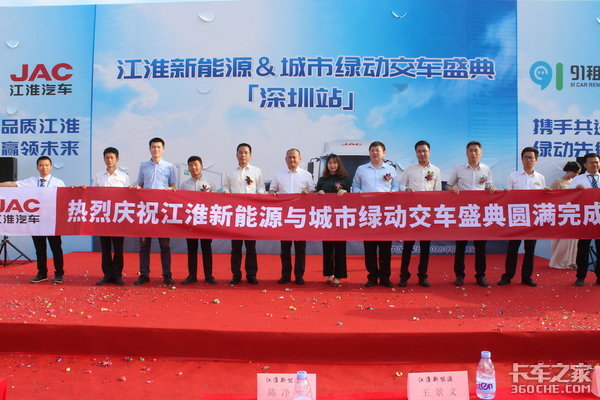 安徽江淮汽车新能源商用车营销公司销售管理部部长陈净刚先生、安徽江淮汽车新能源商用车营销公司服务部部长王景文先生、91租车销售部总监刘子瑜女士、91租车车生态总监张猛先生、91租车企划中心黄佳艳女士、91租车深圳分公司总经理邓兴先生、深圳市江华汽车销售有限公司总经理凌远伟先生以及各大物流企业负责人等参加本次交车盛典。