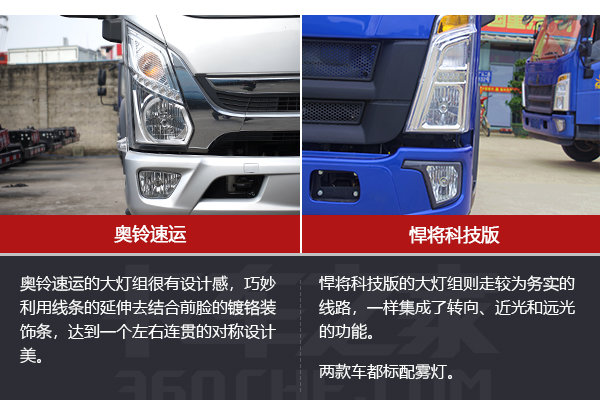 虽然两款车在车型尺寸上差别不大,但外观设计上走的却是两种路线的风格。奥铃速运版前脸使用大量的镀铬装饰,整个外形更偏向于时尚潮流的科技风格,而看起来更为方正的悍将科技版,中网运用了大面积的熏黑设计,整体看起来属于沉稳大方的风格。俗话说“青菜萝卜各有所爱”,不同的风格针对不同的消费人群,而你更中意哪一款呢?