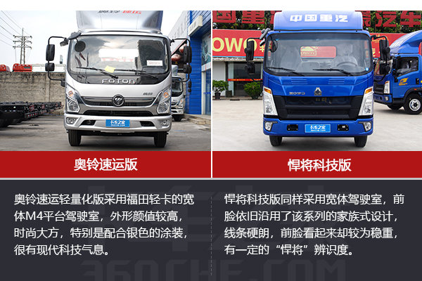 轻量化轻卡交锋!福田奥铃对比重汽悍将你选谁?