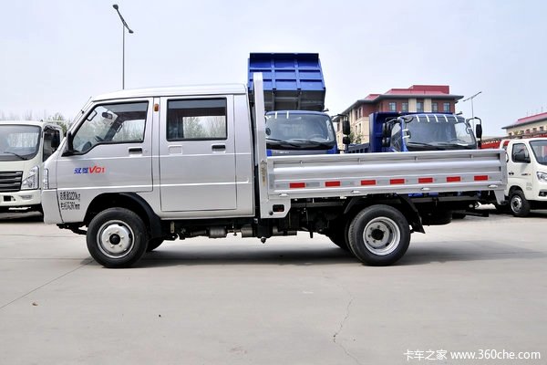 福田时代驭菱VQ2 1.5L 114马力 汽油 3.05米双排栏板微卡。动力方面,搭载全柴A15G发动机,输出功率为114马力,峰值扭矩122牛米,符合国五排放标准,匹配5挡变速箱,厢长级别3.1米。