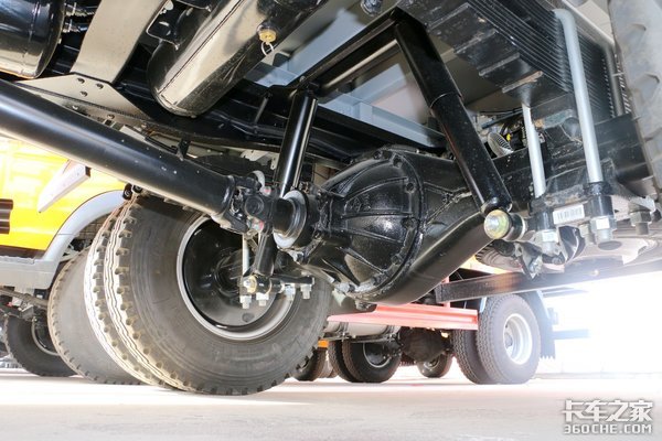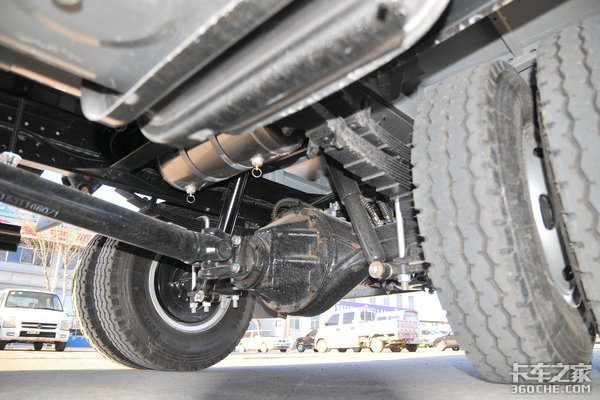 匹配万里扬WLY6G40变速箱,档位数位6;底盘为前3后3+2钢板弹簧结构,搭载汉德3.5T级后桥,允许载荷达到2705kg,速比4.875,可搭载4165x2050x400mm栏板式货箱;车辆总质量达到4.495吨,能够合规装载1.495吨货物。