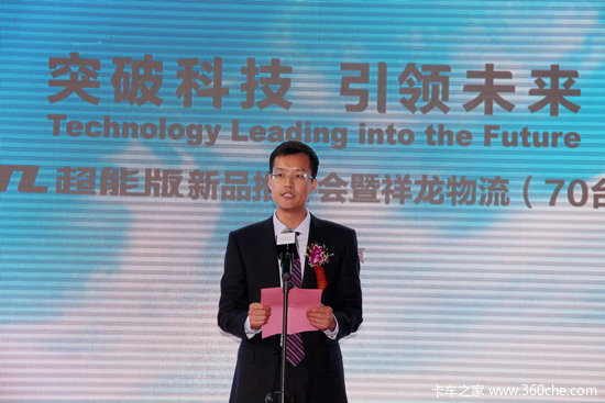福田戴姆勒汽车营销公司副总经理崔士朋先生在讲话中指出欧曼GTL超能版是为中国迅速发展的物流行业量身定制的一款产品。福田康明斯厂方代表详细的介绍了ISG发动机的优越性能以及在福田车辆上的成功运用。祥龙物流代表讲述对欧曼产品的信任以及双方合作体验。
