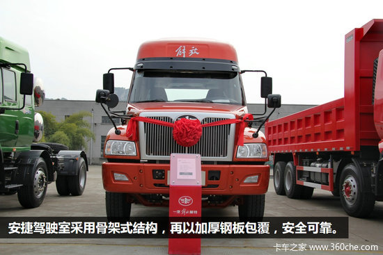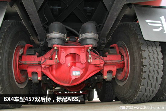 8X4车型则是解放A1H双前桥,457双后桥和大轮减铸钢双后桥可选。所有车型都标配ABS,配合锡柴的发动机制动,整车制动安全性可靠。