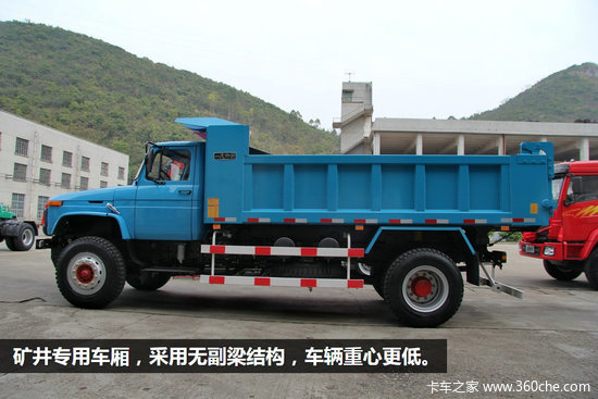 专门设计的矿井专用车厢,采用无副梁结构,车辆重心更低,整车高度不超过2.65米,便于低矮矿洞的矿石装载运输。