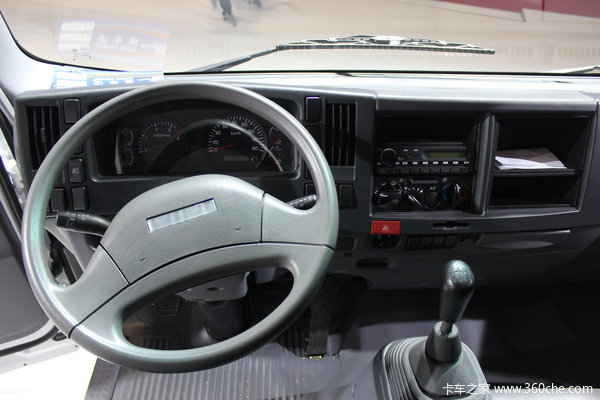 驾驶室依旧沿用700P内饰,没有做太多改动。内部以深色调为主,座椅采用纺织面料。动力转向方向盘,操作轻便。作为物流车来说,内部储物空间较为丰富,可存放物流单据。