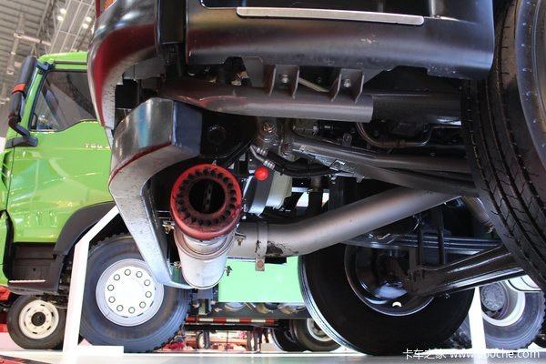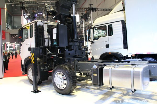 此次参展产品底盘采用中国重汽T5G 8X4专用底盘,选用T5G-D型驾驶室,MC07发动机,280马力,满足国五排放标准。并匹配了技术成熟的HW15710ACL变速箱,铝合金AMT手自一体带超速档。