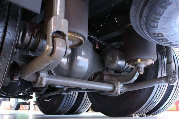 前桥采用少片簧结构,而后桥则是全气囊悬架,不仅大幅降低车辆自重,还能提升驾驶舒适性。同时采用气囊悬架可调节车身高度,快速卸货。后桥为MCY13Q轻量化后桥,速比4.63,装有横向稳定杆,兼顾动力速度及车辆稳定性。