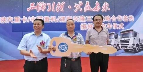 6月28日,陕汽重卡·中联重科·湖南兴隆三方战略合作签约暨百辆德龙F3000水泥搅拌车交车仪式在湖南长沙隆重举行。