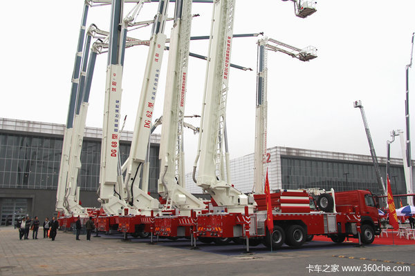 室内展台的消防车就不挨个介绍了,再带大家看看室外的展车,乍一看给小编的第一看感觉这难道是登高比赛吗?怎么一个比一个高,其实外场重点是放登高平台、云梯等大型消防车。外场的展台也不少,其中像徐工、中联重科、山推等消防领域的龙头企业都有所亮相。当然奔驰底盘也在外场着实火了一把。