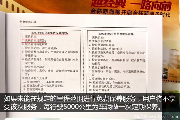 提供两次免费保养 金杯新海狮保养解析