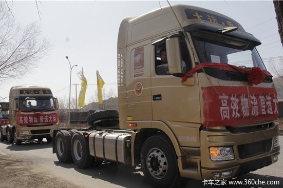 近日,在保定至涞源公路上行驶着一支特殊的车队,前面两辆小车开道,后面是四辆牵引车和两辆载货车,高大威猛的外观颜值爆棚,引得过往车辆和行人纷纷驻足观看,有的观众更是竖起了大拇指称赞道“真是好样的!”这正是河北意都汽车贸易有限公司在河北徐水开展的“高效物流 智选大运”春季巡展活动的一个场景。