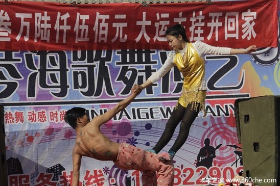 精彩的表演也吸引了附近村民的关注,许多人赶到现场,边欣赏精彩的歌舞,边参观大运展车。