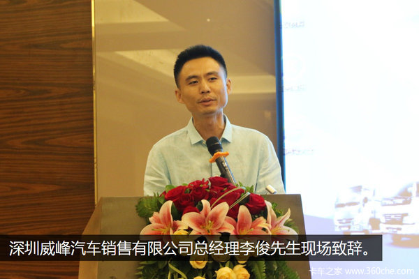 来自深圳威峰汽车销售有限公司总经理李俊先生介绍说,伴随着物流运输业迅猛发展,市场竞争的不断加剧,用户对产品技术、质量、可靠性、售后服务提出了更高的要求,上汽跃进关注用户的需求,将携手深圳威峰提高售后服务、为广大用户提供更高效、更经济、更专业的物流运输解决方案。目前深圳威峰除了能够提供给客户解决销售、售后服务、融资、证件办理的服务,未来还将进一步完善服务、比如给用户提供车货匹配、融资等一系列服务,解决用户购车的后顾之忧。(文/图 马计纳)