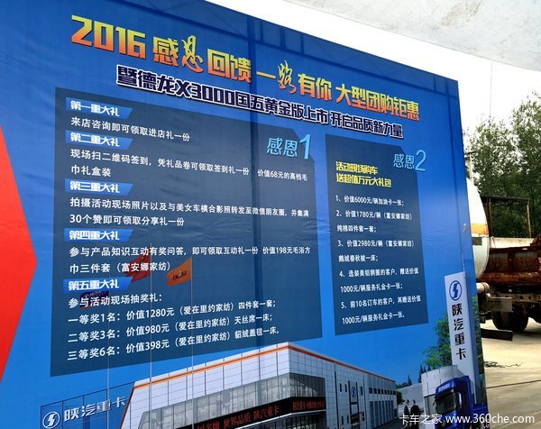 针对活动现场订车的用户,不仅推出一系列的团购钜惠活动,还推出了一系列的新产品,如轻量化的美铝铝圈、AMT自动变速箱、液力缓速器、行车独立空调和轻量化挂车,从而更好地为客户提供一流的产品和一流的服务。
