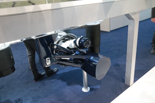 在汉诺威车展上,BPW为我们展示了采用碳纤维材料制作的车桥,相比传统的钢制车桥,碳纤维车桥在保证强度满足使用需要的前提下可以大幅降低车桥自重,降低的自重意味着车辆可以装载更多的货物。