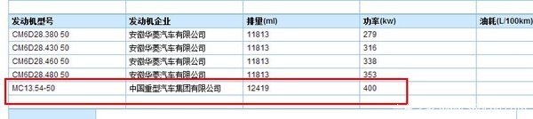 从公告中我们发现该车能够搭载华菱CM6D28系列国五发动机,有380马力、430马力、460马力以及480马力几个选择。同时也可选择MC13.54-50的国五发动机。