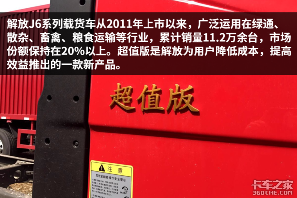 【卡车之家 原创】解放J6系列载货车从2011年上市以来,广泛运用在绿通、散杂、畜禽、粮食运输等行业,累计销量11.2万余台,市场份额保持在20%以上。解放针对6.8m用户降低成本,提高效益推出了的一款J6L超值版,该车搭载着大柴最新的CA4DH发动机,售价12.88万。