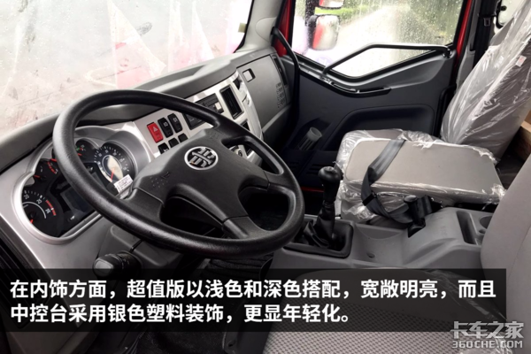 “大柴新CA4DH发动机+8JS75C变速箱+9吨级别的378后桥”的黄金动力配置的超值版售价只有12.88万,相比于目前市场的几大主流6.8m载货车来说便宜了近2万,对于新入行或者由轻卡向中卡转型的用户来说是绝佳选择。