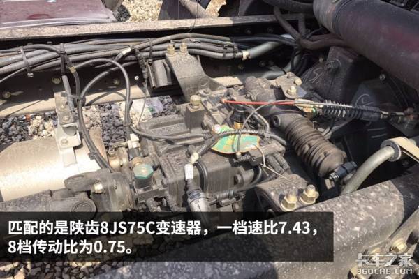 匹配的是陕齿8JS75C变速器,一档速比7.43,8档传动比为0.75,换挡更为流畅简单。