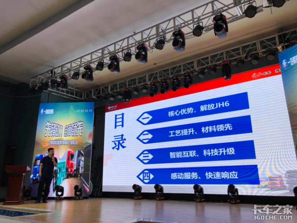 解放青岛商代处销售经理陈天夫进行了产品介绍。陈经理介绍到青岛厂生产线为亚洲第一,为用户朋友制造品质过硬的产品提供了强有力保障;此次推出的悍V、JH6等车型,配锡柴6DL、6DM奥威发动机。锡柴是国内最早采用四气门顶置凸轮轴结构的发动机厂家,技术成熟可靠,百公里油耗比竞品低3-5升,多拉快跑、质量好、省油、出勤率有保障。