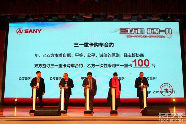 事实上,此次大会不仅是三一重卡的2019春季团购会,也是首届三一卡车节的开幕式。伴随着“5、4、3、2、1”的倒计时计数,最重要的时刻来了:三一重卡董事长梁林河先生、三一重卡常务副总经理张红松先生、三一重卡副总经理蒋建军先生、三一重卡产品营销中心总监张晓帅先生、三一重卡研发中心总监朱宏先生共同上台,开启了首届三一卡车节启动仪式。