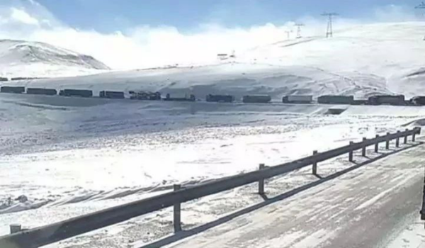 行驶在此路段的司机减慢速度,顶着山口前的风雪,向着前方的白茫一片,缓慢出发。