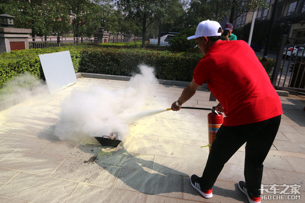 灭火器作为车辆上的必备物品,对驾驶员行车安全起到重要保障。但驾驶员真的会用吗?不少卡车司机开了一辈子车,或许一次都没用过。因此,本场比赛特别增加了灭火演练。