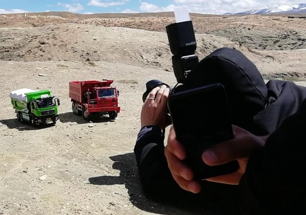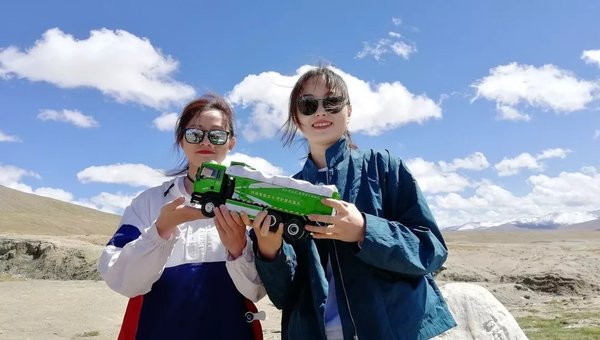两位路人游客小姐姐对我们精致的车模饶有兴趣,虽然素不相识,手捧中国重汽车模就是缘分啊,“咔嚓”来一张!