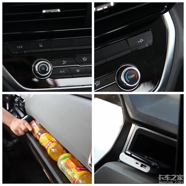 另外,通过市场调查和经销商反馈,轻卡用户工作节奏较快、使用大屏手机且多配备两只手机;因此改款车型设计有手机槽、2个USB充电口以及1个24V取电口,满足平常的用电需求。