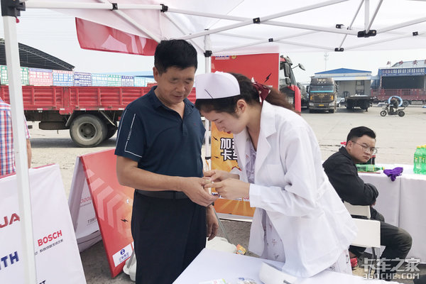 在关爱卡车人方面,除了活动现场提供常规的身体检查之外,专业按摩医师还可以对卡车司机的腰部、颈部、腿部等职业病部位进行细致的检查,并传授减压手法,缓解长时间驾车疲劳。