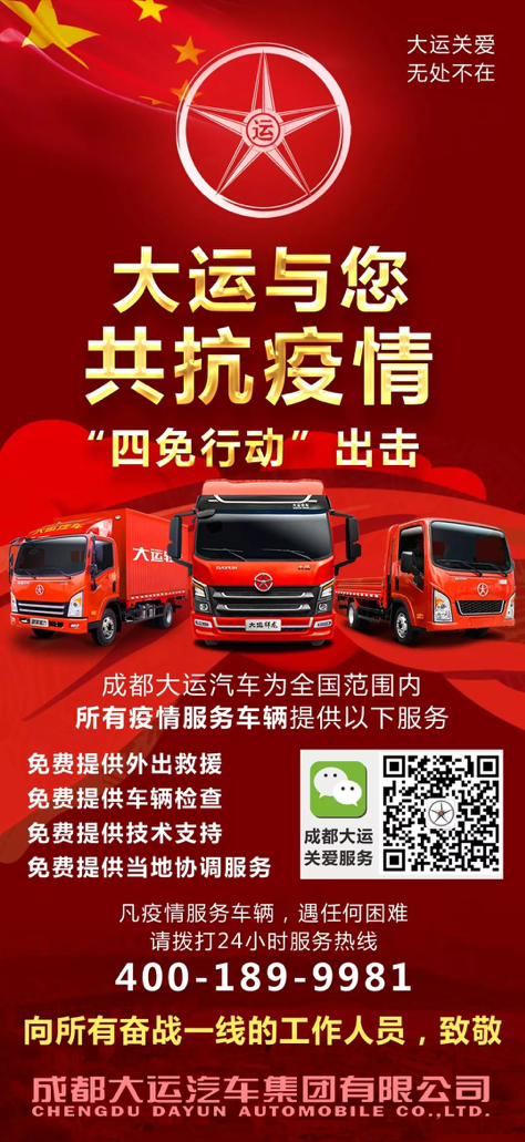 保运力,保民生,成都大运暖心推出“四免行动”为每一辆救援车辆护航,全力保障防控应急运输任务。