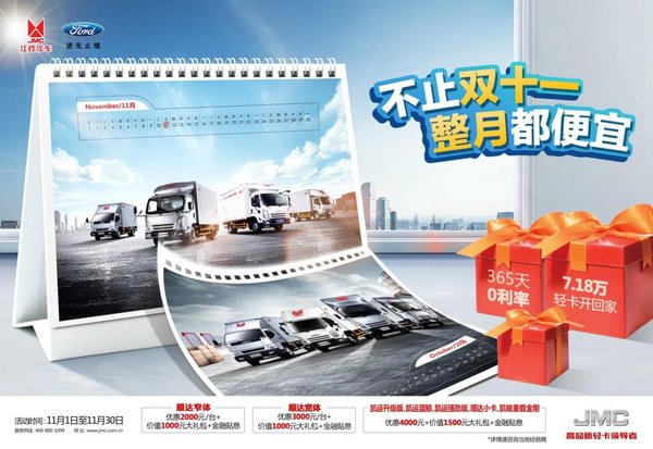 购车立减4000元,江铃轻卡十一月与你约“惠”
