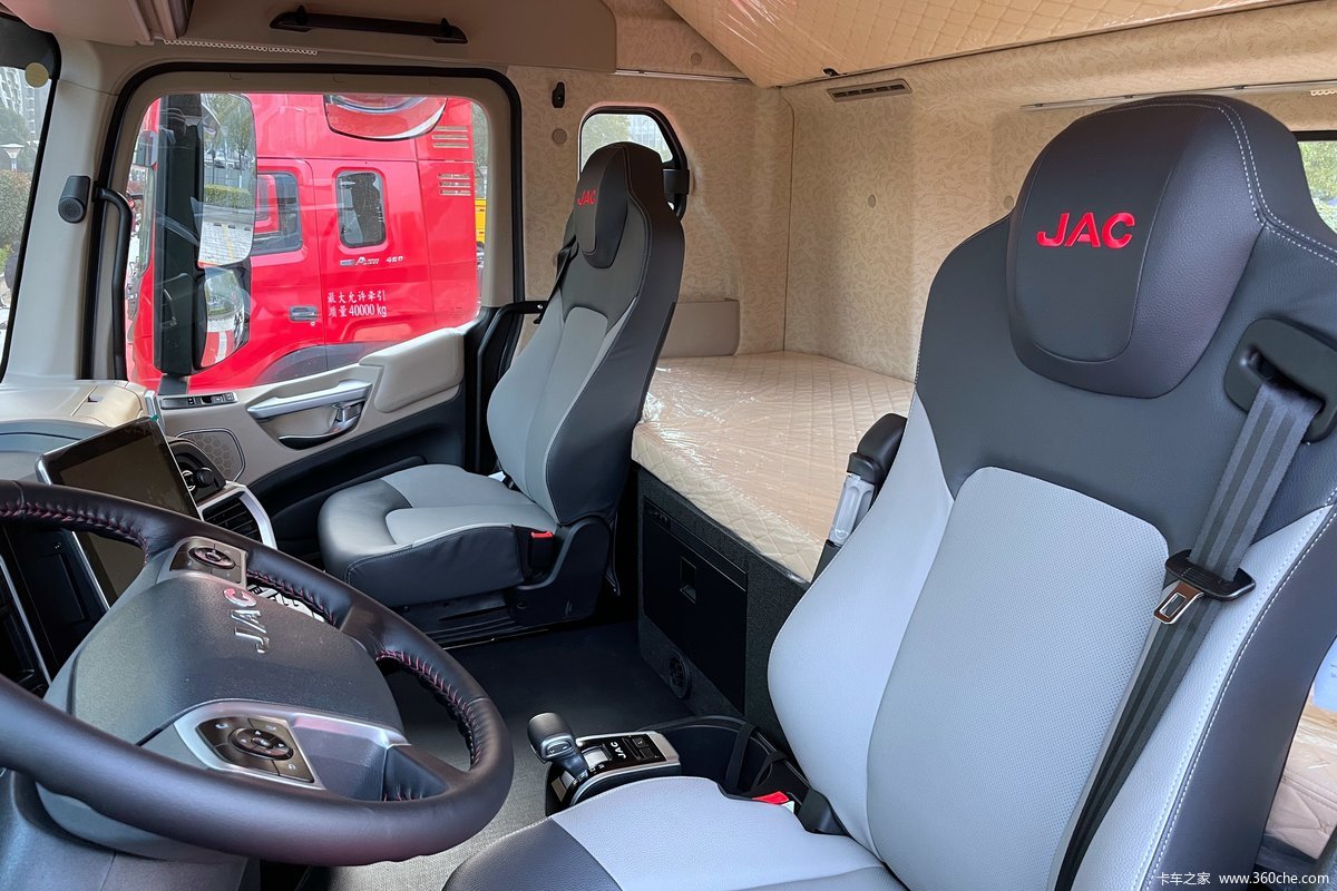 得益于高顶平地板的设计,超越Q7驾驶室可以为驾乘人员营造更大的内部空间,无论是内部高度还是主副驾座椅间隙都非常充裕,让司机在驾驶室里做到真正的行动自如。