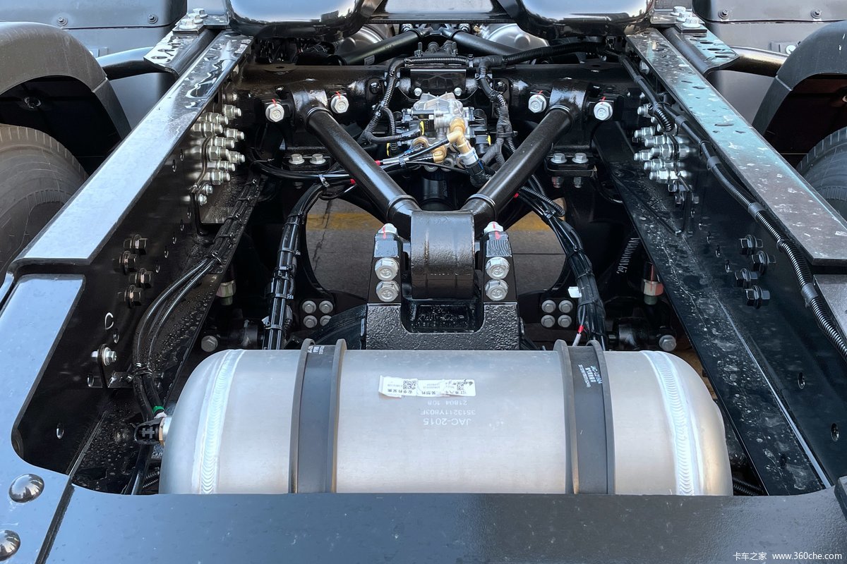 轮胎采用的是规格为12R22.5型号的真空胎,这款轮胎的优点非常明显,就是耐磨耐用,重量轻。而且其滚动阻力较低,配合上可调节导流罩等能够进一步降低车辆行驶的油耗,增加燃油经济性。