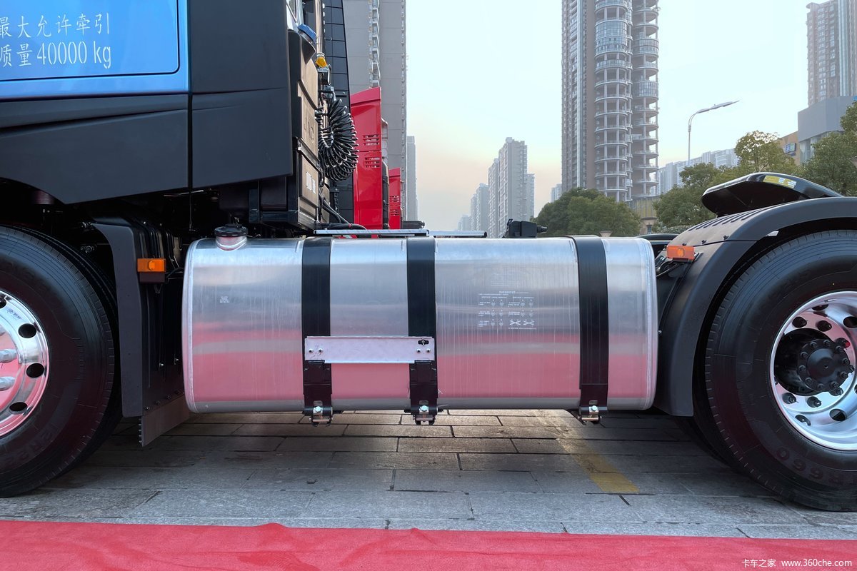 在续航方面,这款超越Q7采用的是800+200L的双油箱设计,总共1000L的大容积油箱非常适合跑长途路线的干线物流,减少加油次数,节约运输时间。全铝合金外壳的油箱也能够帮助车辆进一步降低自重。