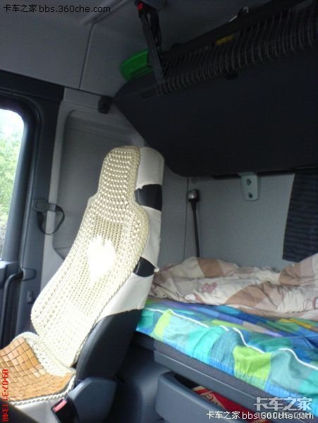 空调数控恒温只要设定好温度就不用管了,然后还有定速巡航,油管油箱加热。在天津加的0号柴油,晚上-8度,马达一打就着了,还有重量转移,后桥提升,排气制动很有特色,在刹车上踩下就启动了,再踩3公分下去才启动轮刹,然后先是拖架刹,再踩下去一点好像才启动车头的刹车,前轮不用松掉刹车,有abs,tc功能。