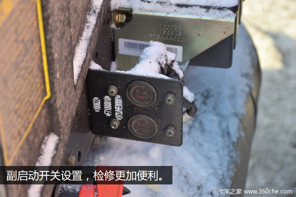 电瓶旁边装有副启动开关,除了在车的外部也能够方便启动外,还为检修该车带来了便利。