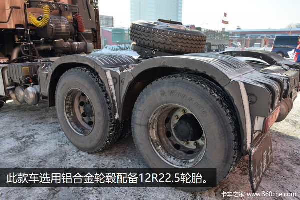 选用铝合金轮毂配备12R22.5轮胎。