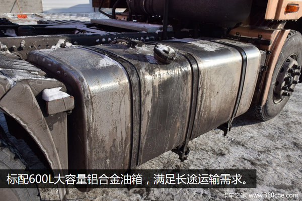 尿素罐与油箱分列两侧,油箱采用铝合金材料,不但自重减轻,而且油箱内不易生锈,还可免除定期清洗的麻烦,油箱容量为600L,满足长途运输需要。