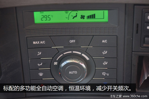 标配的多功能全自动空调,恒温环境,减少开关频次,在降低压缩机负荷同时能够节省燃油。