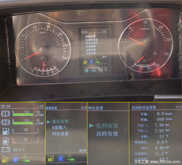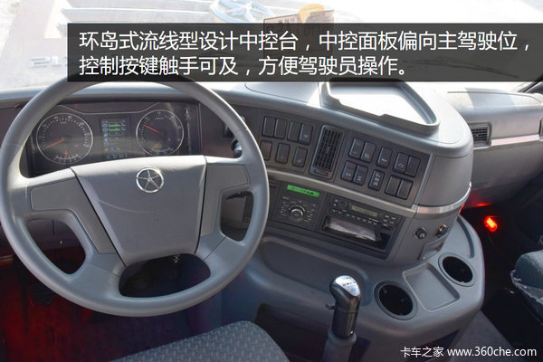 经典的仪表盘设计,仪表盘中央的彩色显示屏,能够提供油量、尿素溶液、发动机等多种重要信息,并可以对速比、档位等进行设置。