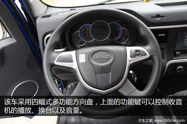 该车采用四幅式多功能方向盘,上面的功能键可以控制收音机的播放、换台以及音量。而且四幅式方向盘在行车过程中能够为驾驶员提供更好的操控舒适性。