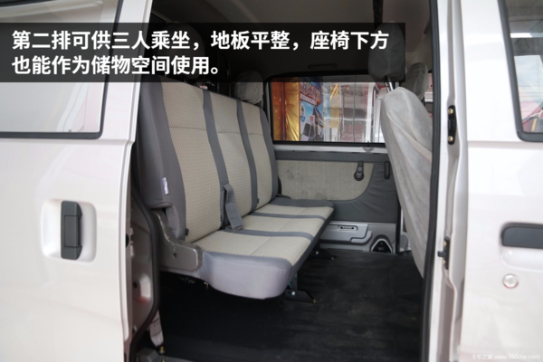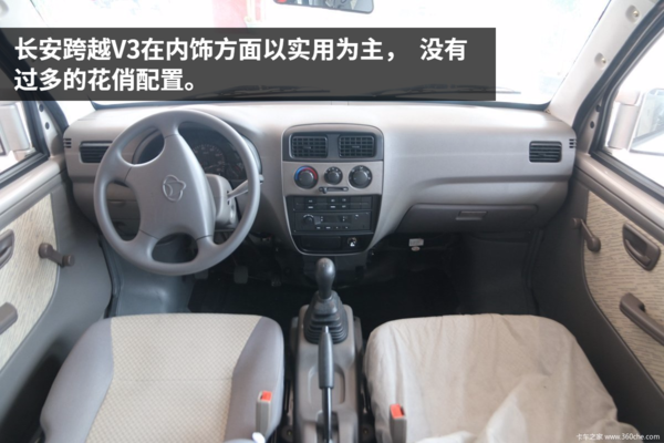 在内饰部分,长安跨越V3完全是实用取向,没有太多花俏额的配置,不过就以3.68万的车身价来说,已经算得上是厚道了,配备了原厂的空调以及电助力转向,使驾驶的舒适性得到保证。实拍该车乘员舱采用2+3的设置,前两排为乘员座,取消了第三排座椅,取而代之的是一个容量为2.1立方的货箱,我们还能选择两座版的V3进一步提升货物装载量。
