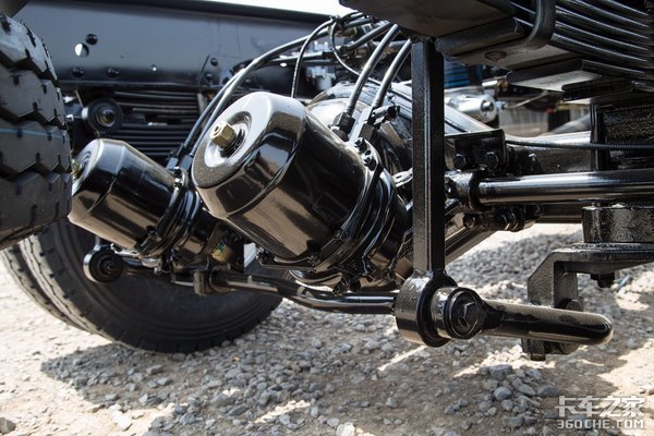 驱动桥采用的是5.125速比的325H青特车桥,搭配8.25R16轮胎,轮距1740毫米。最重要的是,驱动桥带有横向稳定杆,这个配置之前在轻卡上可以说非常少见,在急转弯的时候,可以大幅度减少车身的侧倾量,提高行车稳定性。