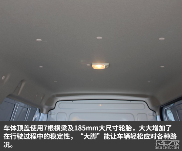 M60承载件沿用睿行M80轻客标准的3H高刚性车架、大梁采用2.0mm厚钢板一次冲压而成(传统轻客是1.8mm),在保证行驶更稳定的同时也让载货高达850KG。