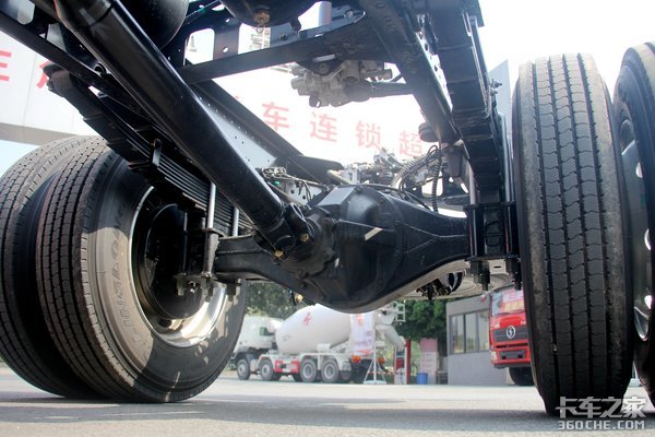 底盘为前9后8+6的钢板弹簧悬架结构,能够保证车辆在满载情况下的行驶稳定性,也能够有效提升行车安全。