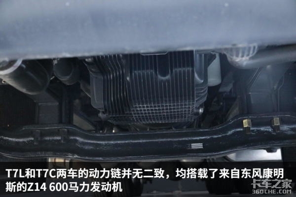 2,动力需求:T7L和T7C的动力链匹配了东康Z14 600马力国六发动机加采埃孚AMT变速箱,速比为2.643的新440后桥,并且还有康迈免维护轮端加持,动力性,出勤率皆有保障。